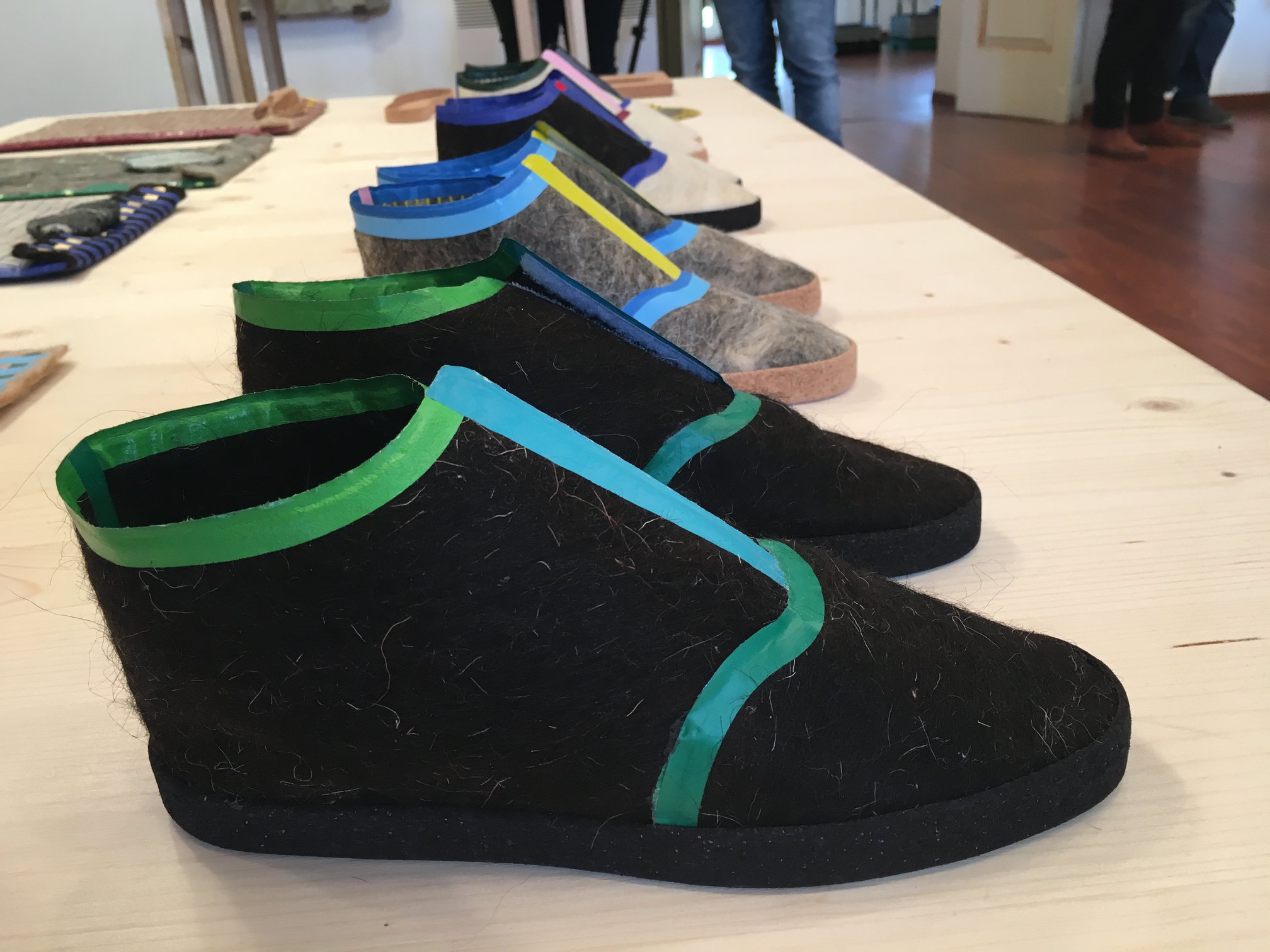 Au cours de leur résidence, ils ont exploité en toute autonomie les caractéristiques propres à la laine corse pour imaginer différents types de produits, des tapis à l’allure branchée aux chaussures en passant par des pochettes pour ordinateurs et smartphones 100 % en laine. Objectif : proposer des prototypes, à développer en collaboration avec des artisans locaux, pour travailler sur la transformation du matériau et s’orienter vers une commercialisation de leur production.