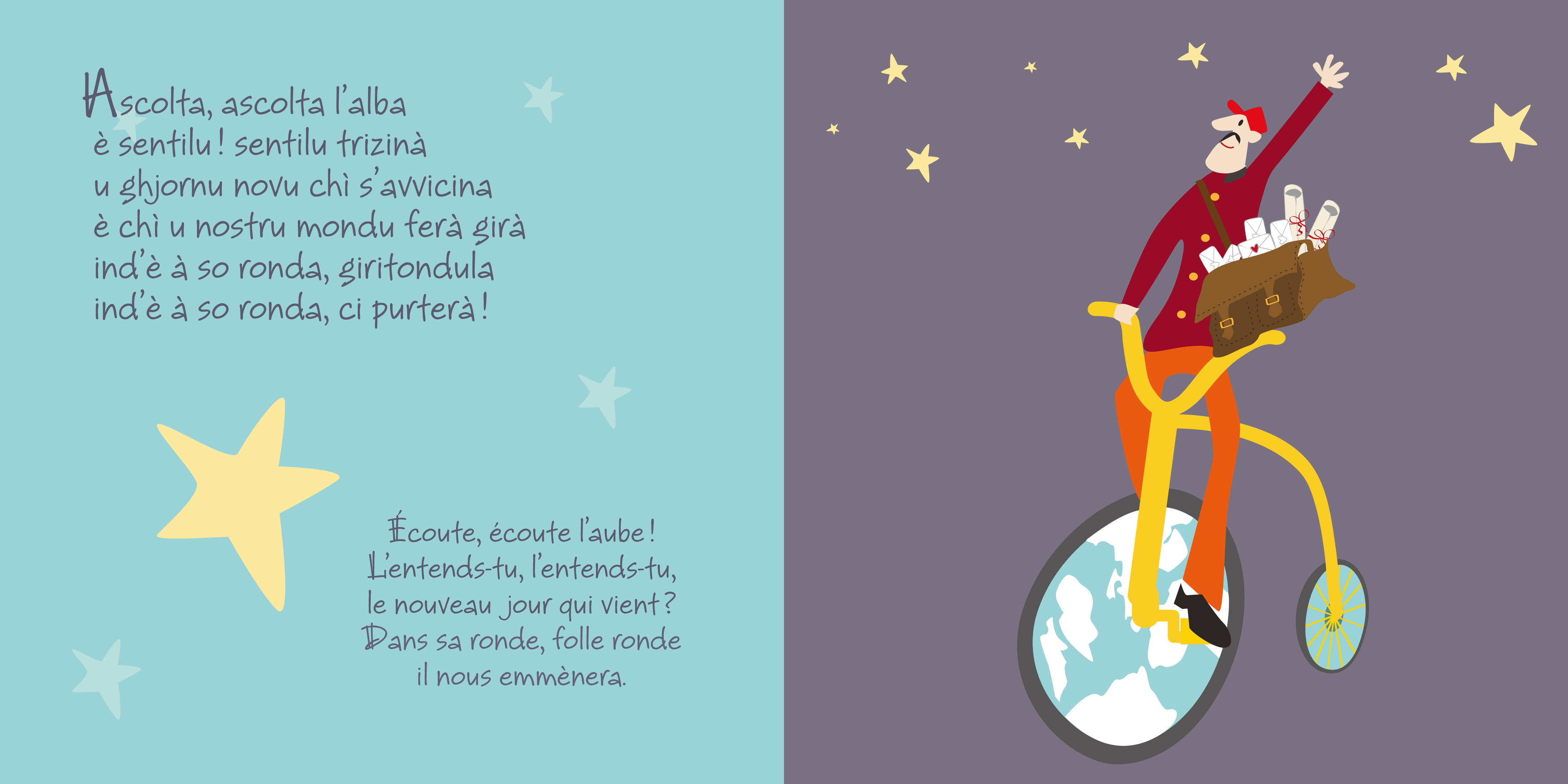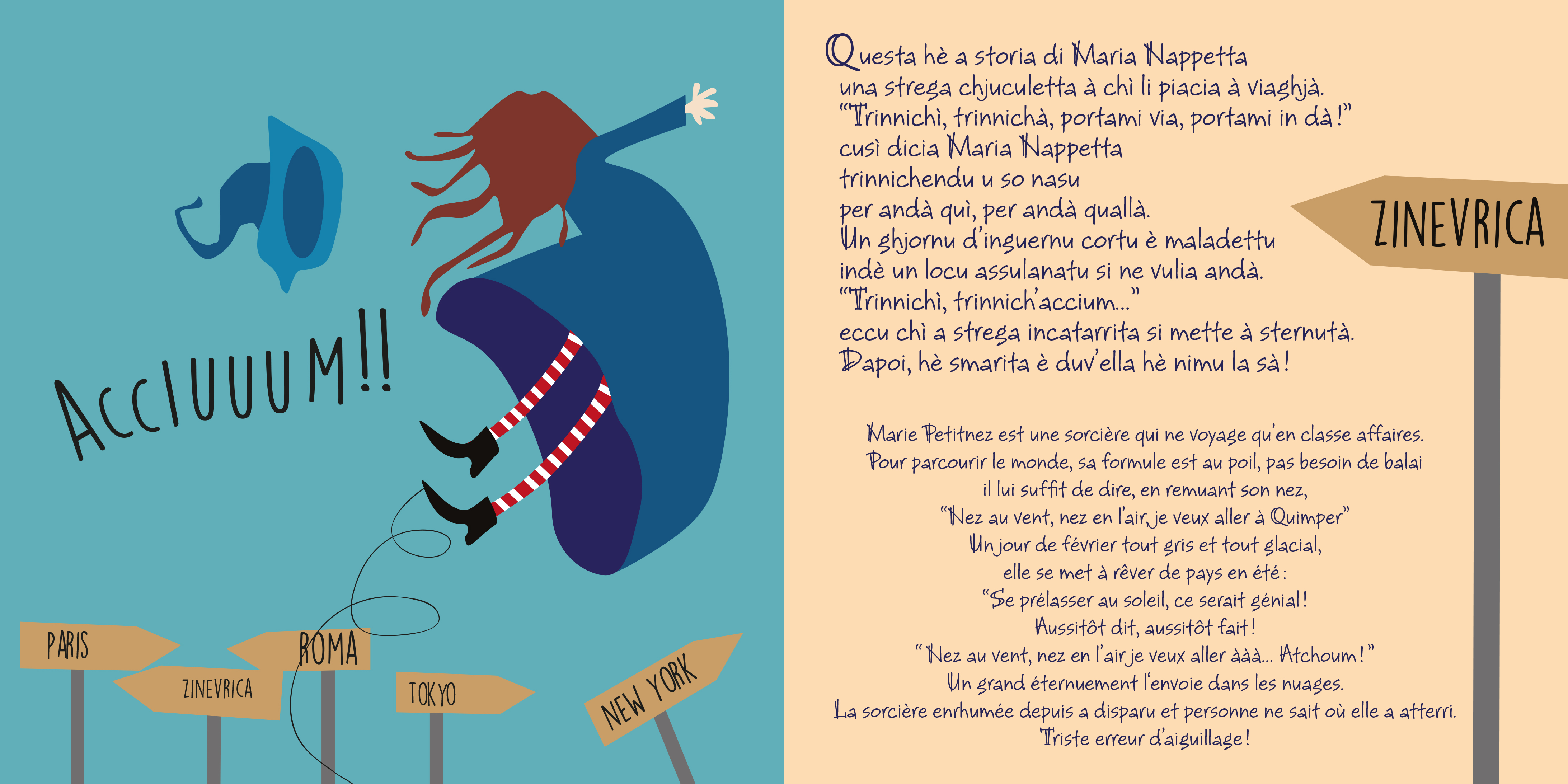 Ce sont de belles rencontres qui sont à l’origine de ce projet. Tout d’abord, la naissance de mes deux petites filles à qui ce recueil est dédié. Il m’est apparu nécessaire de leur transmettre la richesse et la musique de la langue que j’ai reçue de mes parents. C’est ainsi qu’est née l’idée de ce livre à destination de tous les enfants. Et c’est aussi ma rencontre avec Marie Jo Arrighi et Jean Harixalde , des éditions les immortelles, qui séduits par le projet ont décidé de l’éditer. C’est mon premier ouvrage dont je signe les textes et les illustrations.