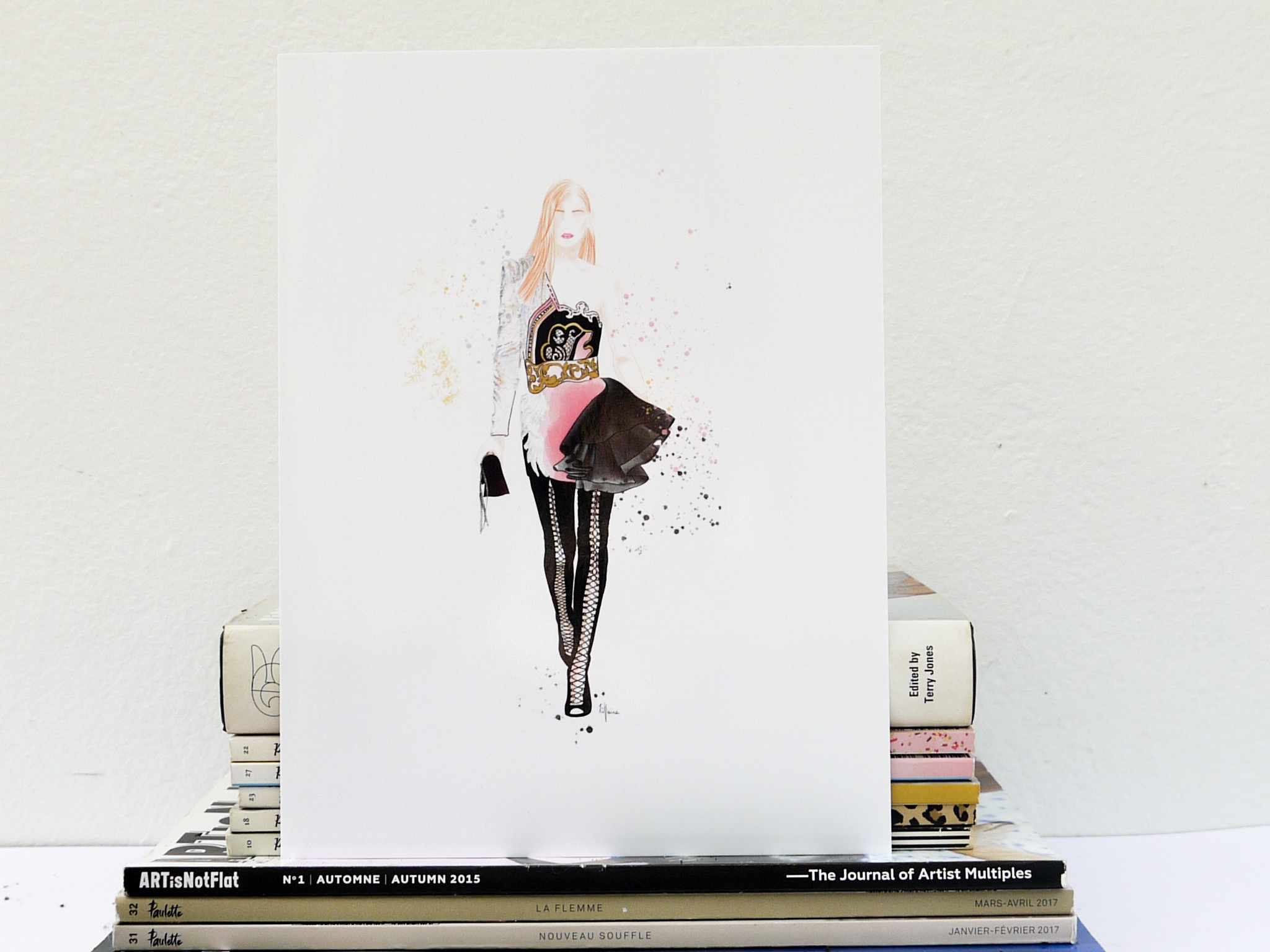 Ses affiches « Fashion Show » apportent féminité et élégance aux intérieurs. Elles sont imprimées en série limitée de 10 exemplaires et chaque illustration est signée à la main par sa créatrice. La collection « Kids » est un panaché de bonne humeur pour les chambres des petits. Encadrée, suspendue, ou juste posée, l’affiche décore et donne du style aux murs.
