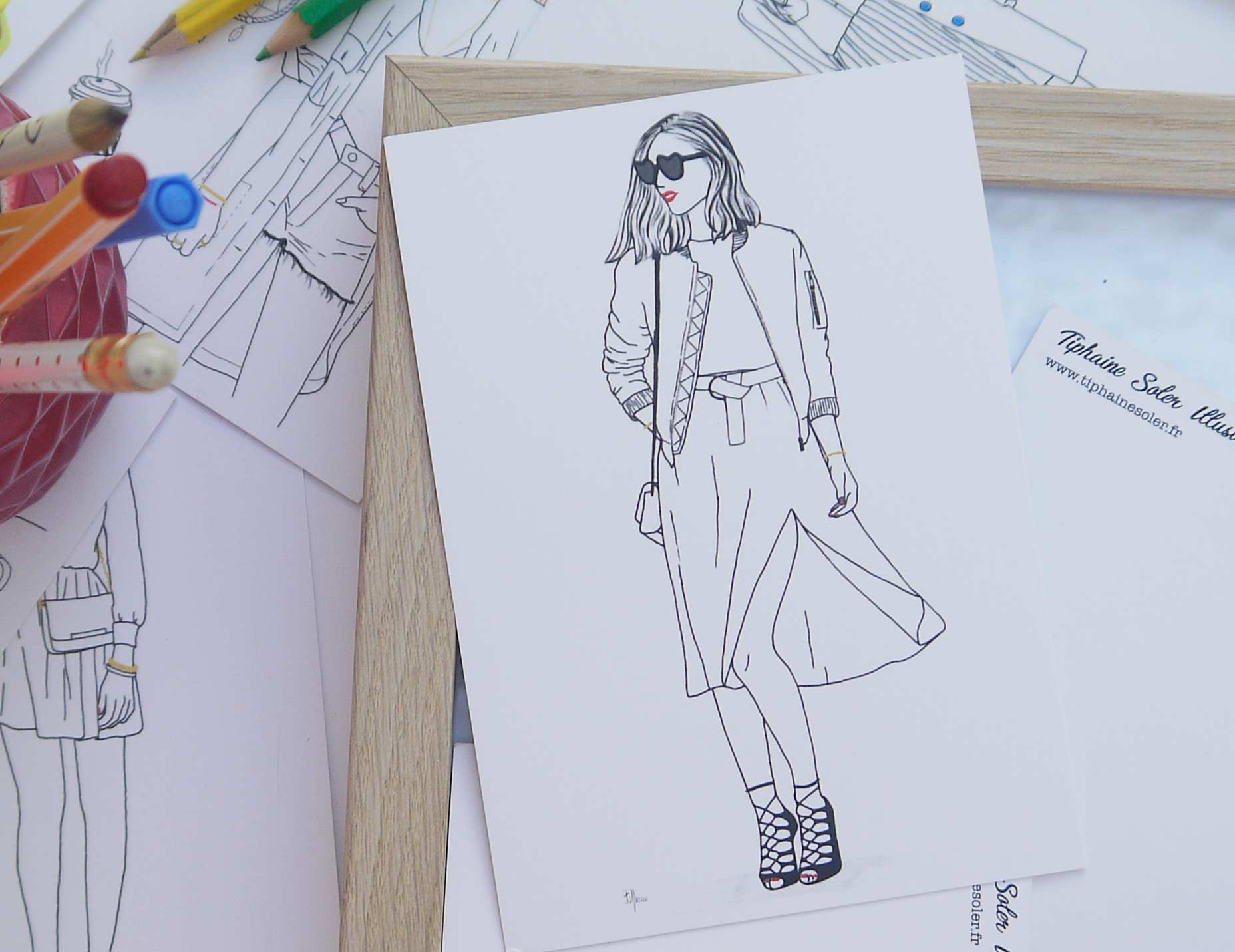 Tiphaine passe beaucoup de temps devant son ordinateur, ce qui lui permet de retravailler ses crayonnés pour optimiser ses créations. L’illustratrice propose également des dessins personnalisés pour des cartes de visite, des encarts publicitaire, des faire-part…La jeune Ajaccienne est capable de jongler entre différents supports et de répondre à des demandes spécifiques.